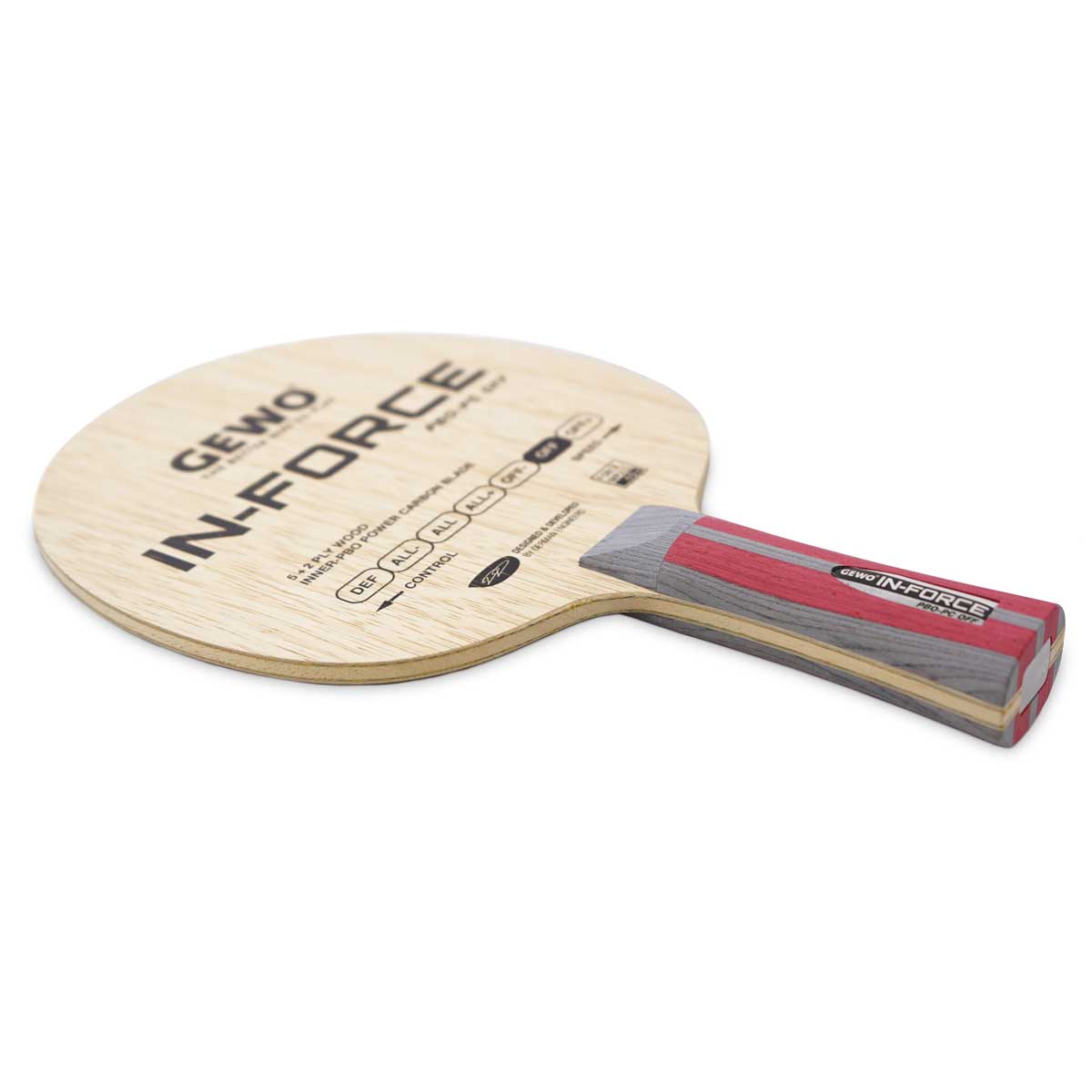 Una composizione del telaio che combina stabilità, velocità e sensibilità per ottenere una sensazione equilibrata e abbastanza morbida, offrendo al contempo riserve di potenza più che sufficienti per colpi potenti. Troppo bello per essere vero? Non con GEWO In-Force PBO-PC Off! La speciale tecnica di incollaggio combinata con la durezza della nuova fibra PBO-PC garantisce caratteristiche di gioco fantastiche in termini di accelerazione e controllo. Una vera novità nella gamma GEWO di telai di fascia alta. Grazie agli strati esterni in Limba, il telaio offre anche un contatto più lungo con la palla e ottime prestazioni di rotazione.
